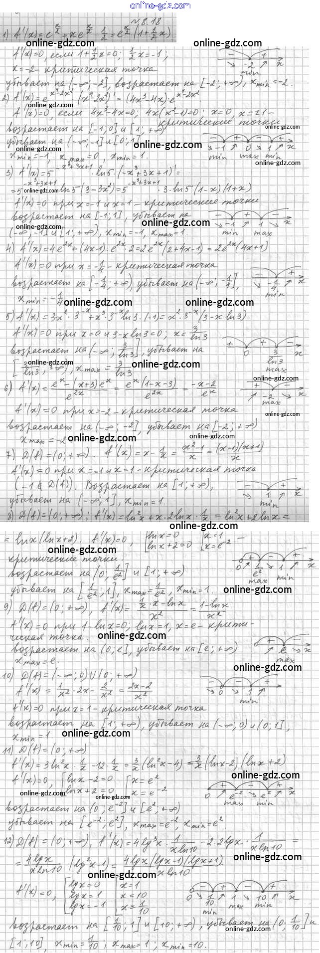 Готовые домашние задания по Алгебре за 11 класс Учебник Мерзляк, Номировский Алгоритм успеха Углубленный уровень 2019 - §8. Производные показательной и логарифмической функций 8.18