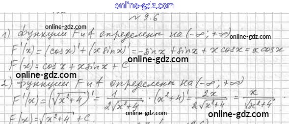 Готовые домашние задания по Алгебре за 11 класс Учебник Мерзляк, Номировский Алгоритм успеха Углубленный уровень 2019 - §9. Первообразная 9.6