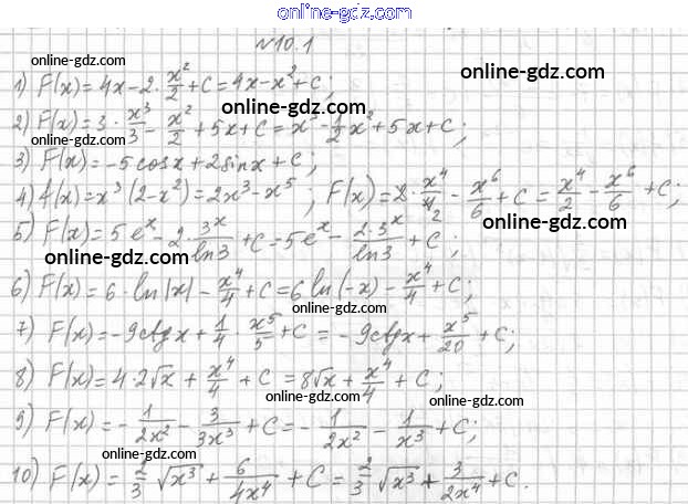 Готовые домашние задания по Алгебре за 11 класс Учебник Мерзляк, Номировский Алгоритм успеха Углубленный уровень 2019 - §10. Правила нахождения первообразной 10.1