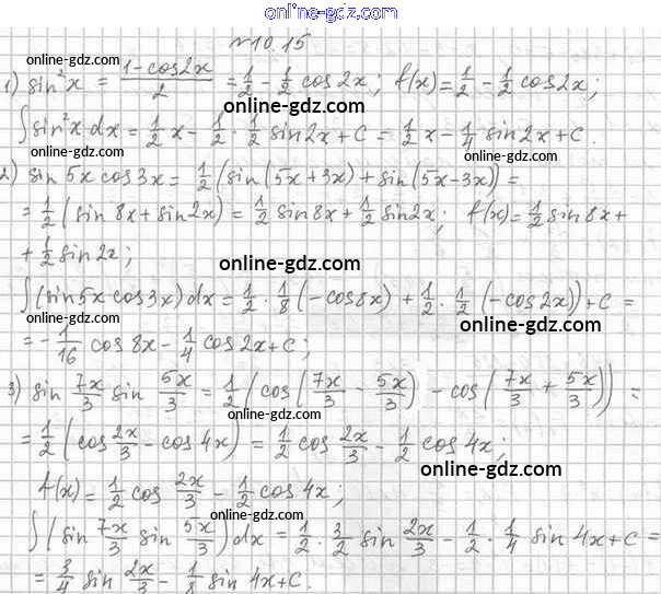 Готовые домашние задания по Алгебре за 11 класс Учебник Мерзляк, Номировский Алгоритм успеха Углубленный уровень 2019 - §10. Правила нахождения первообразной 10.15