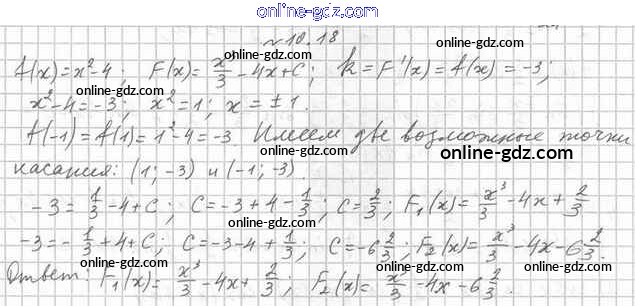 Готовые домашние задания по Алгебре за 11 класс Учебник Мерзляк, Номировский Алгоритм успеха Углубленный уровень 2019 - §10. Правила нахождения первообразной 10.18