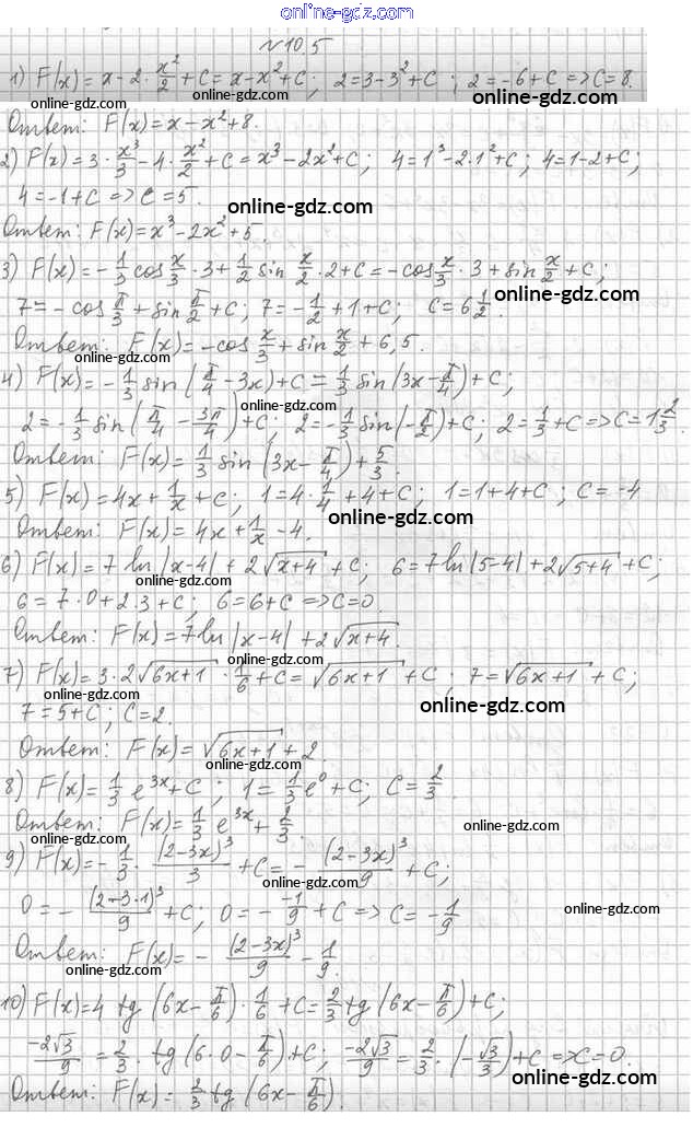 Готовые домашние задания по Алгебре за 11 класс Учебник Мерзляк, Номировский Алгоритм успеха Углубленный уровень 2019 - §10. Правила нахождения первообразной 10.5