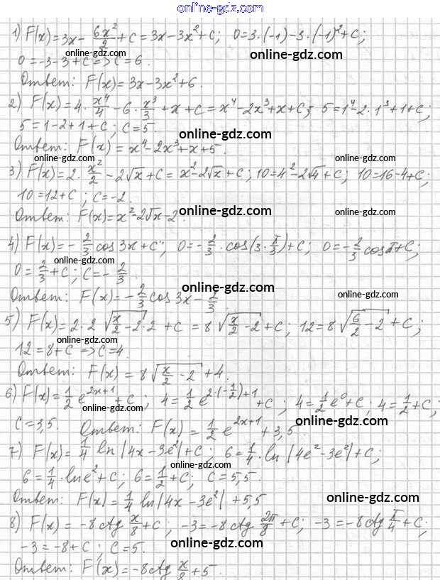Готовые домашние задания по Алгебре за 11 класс Учебник Мерзляк, Номировский Алгоритм успеха Углубленный уровень 2019 - §10. Правила нахождения первообразной 10.6
