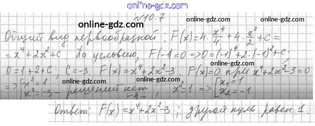 Готовые домашние задания по Алгебре за 11 класс Учебник Мерзляк, Номировский Алгоритм успеха Углубленный уровень 2019 - §10. Правила нахождения первообразной 10.7