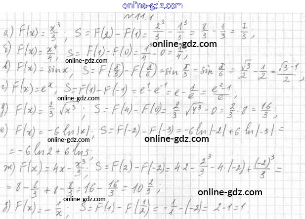 Готовые домашние задания по Алгебре за 11 класс Учебник Мерзляк, Номировский Алгоритм успеха Углубленный уровень 2019 - §11. Площадь криволинейной трапеции. Определённый интеграл 11.1