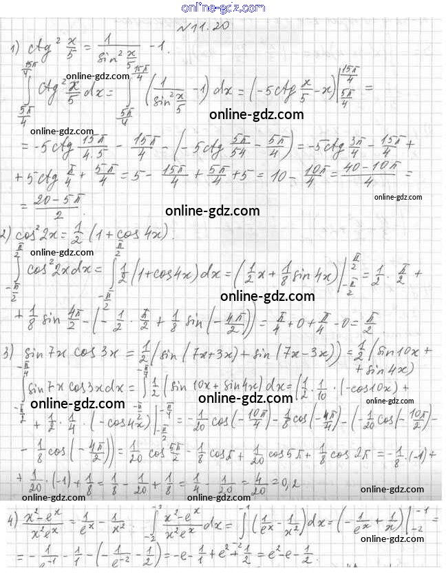 Готовые домашние задания по Алгебре за 11 класс Учебник Мерзляк, Номировский Алгоритм успеха Углубленный уровень 2019 - §11. Площадь криволинейной трапеции. Определённый интеграл 11.20