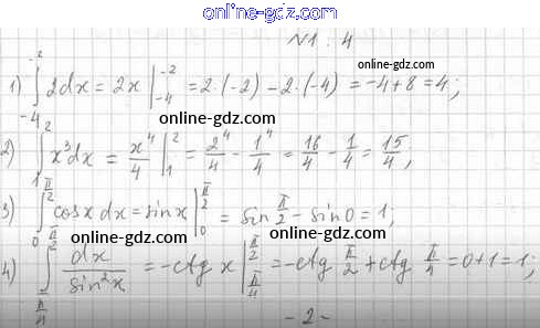 Готовые домашние задания по Алгебре за 11 класс Учебник Мерзляк, Номировский Алгоритм успеха Углубленный уровень 2019 - §11. Площадь криволинейной трапеции. Определённый интеграл 11.4