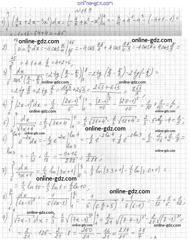 Готовые домашние задания по Алгебре за 11 класс Учебник Мерзляк, Номировский Алгоритм успеха Углубленный уровень 2019 - §11. Площадь криволинейной трапеции. Определённый интеграл 11.9