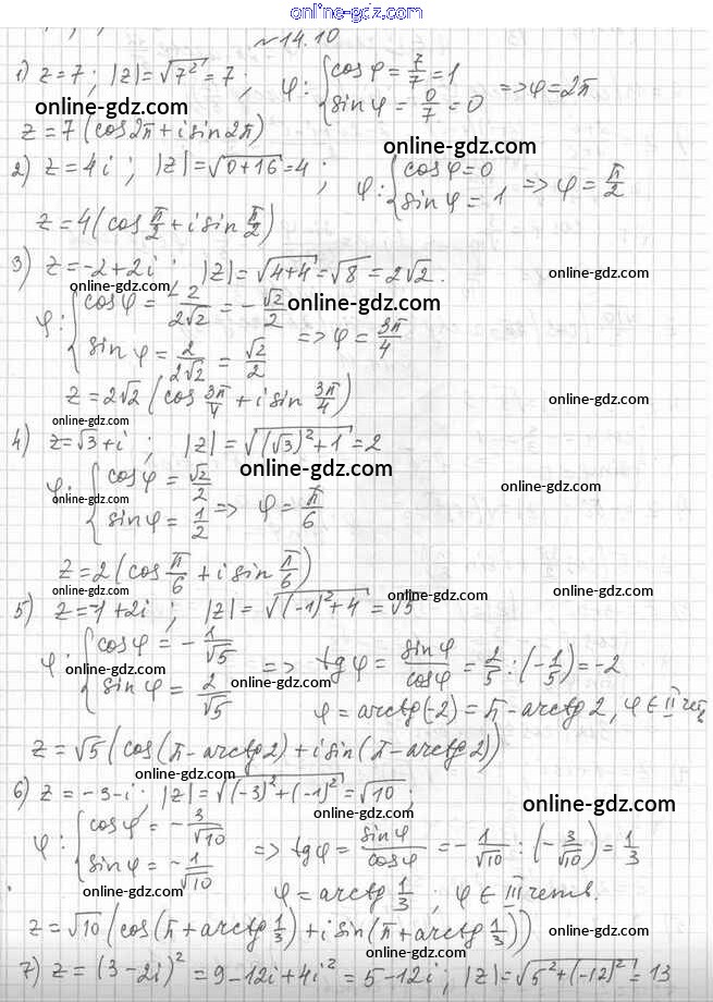 Готовые домашние задания по Алгебре за 11 класс Учебник Мерзляк, Номировский Алгоритм успеха Углубленный уровень 2019 - §14. Комплексная плоскость. Тригонометрическая форма комплексного числа 14.10