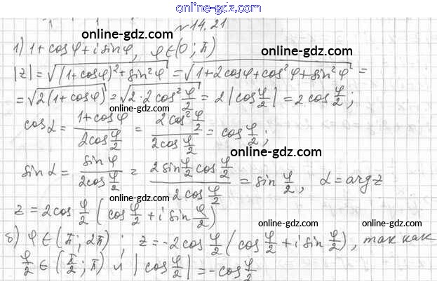 Готовые домашние задания по Алгебре за 11 класс Учебник Мерзляк, Номировский Алгоритм успеха Углубленный уровень 2019 - §14. Комплексная плоскость. Тригонометрическая форма комплексного числа 14.21