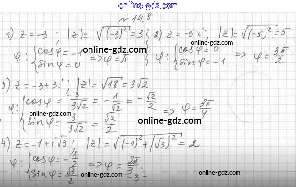 Готовые домашние задания по Алгебре за 11 класс Учебник Мерзляк, Номировский Алгоритм успеха Углубленный уровень 2019 - §14. Комплексная плоскость. Тригонометрическая форма комплексного числа 14.8