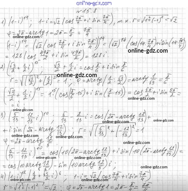 Готовые домашние задания по Алгебре за 11 класс Учебник Мерзляк, Номировский Алгоритм успеха Углубленный уровень 2019 - §15. Умножение и деление комплексных чисел, записанных в тригонометрической форме. Корень n-й степени из комплексного числа 15.8
