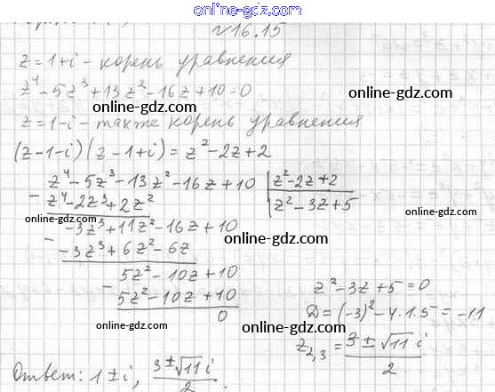 Готовые домашние задания по Алгебре за 11 класс Учебник Мерзляк, Номировский Алгоритм успеха Углубленный уровень 2019 - §16. Решение алгебраических уравнений на множестве комплексных чисел 16.15