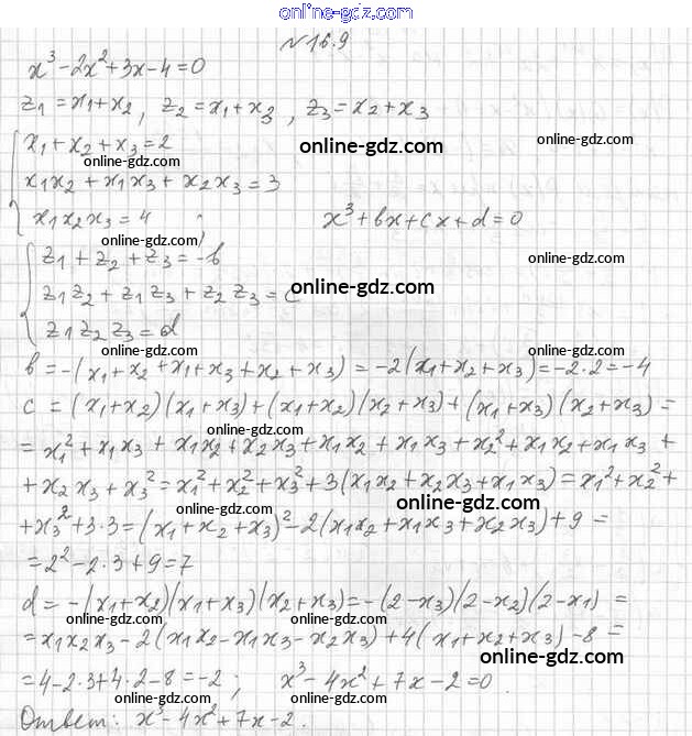 Готовые домашние задания по Алгебре за 11 класс Учебник Мерзляк, Номировский Алгоритм успеха Углубленный уровень 2019 - §16. Решение алгебраических уравнений на множестве комплексных чисел 16.9