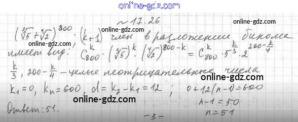 Готовые домашние задания по Алгебре за 11 класс Учебник Мерзляк, Номировский Алгоритм успеха Углубленный уровень 2019 - §17. Элементы комбинаторики и бином Ньютона 17.26