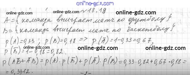 Готовые домашние задания по Алгебре за 11 класс Учебник Мерзляк, Номировский Алгоритм успеха Углубленный уровень 2019 - §18. Аксиомы теории вероятностей 18.18