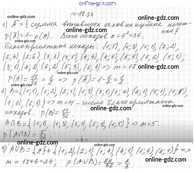Готовые домашние задания по Алгебре за 11 класс Учебник Мерзляк, Номировский Алгоритм успеха Углубленный уровень 2019 - §18. Аксиомы теории вероятностей 18.24