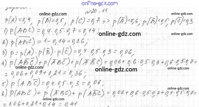 Готовые домашние задания по Алгебре за 11 класс Учебник Мерзляк, Номировский Алгоритм успеха Углубленный уровень 2019 - §20. Независимые события 20.11