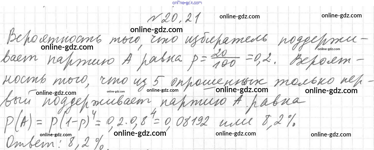 Готовые домашние задания по Алгебре за 11 класс Учебник Мерзляк, Номировский Алгоритм успеха Углубленный уровень 2019 - §20. Независимые события 20.21