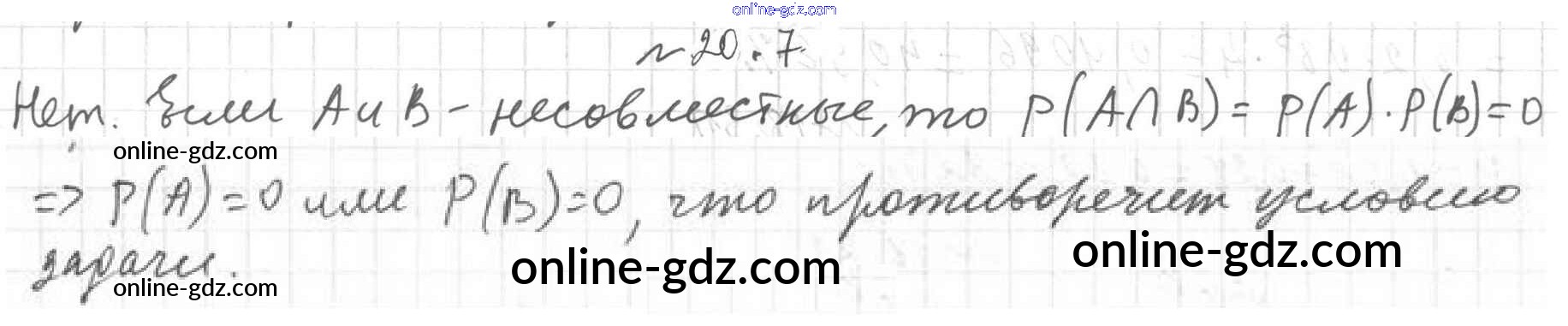 Готовые домашние задания по Алгебре за 11 класс Учебник Мерзляк, Номировский Алгоритм успеха Углубленный уровень 2019 - §20. Независимые события 20.7