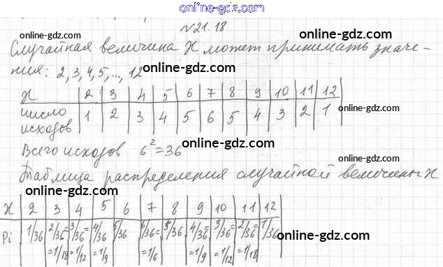 Готовые домашние задания по Алгебре за 11 класс Учебник Мерзляк, Номировский Алгоритм успеха Углубленный уровень 2019 - §21. Случайная величина 21.18