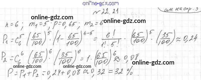 Готовые домашние задания по Алгебре за 11 класс Учебник Мерзляк, Номировский Алгоритм успеха Углубленный уровень 2019 - §22. Схема Бернулли. Биномиальное распределение 22.21