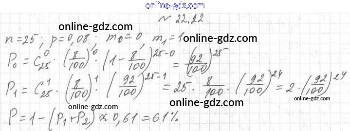 Готовые домашние задания по Алгебре за 11 класс Учебник Мерзляк, Номировский Алгоритм успеха Углубленный уровень 2019 - §22. Схема Бернулли. Биномиальное распределение 22.22