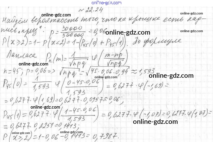 Готовые домашние задания по Алгебре за 11 класс Учебник Мерзляк, Номировский Алгоритм успеха Углубленный уровень 2019 - §22. Схема Бернулли. Биномиальное распределение 22.24