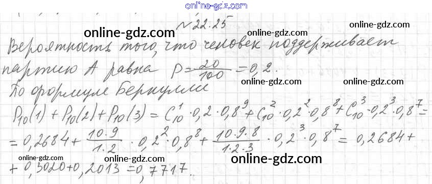 Готовые домашние задания по Алгебре за 11 класс Учебник Мерзляк, Номировский Алгоритм успеха Углубленный уровень 2019 - §22. Схема Бернулли. Биномиальное распределение 22.25