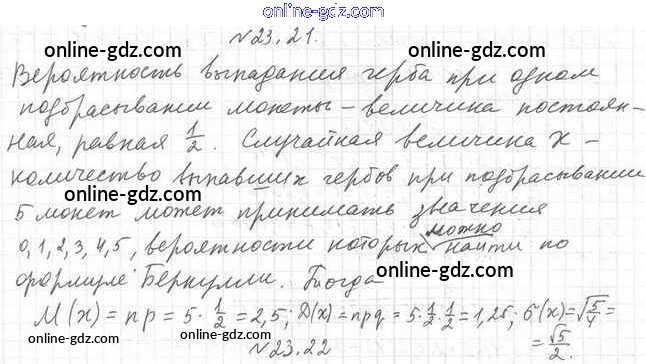 Готовые домашние задания по Алгебре за 11 класс Учебник Мерзляк, Номировский Алгоритм успеха Углубленный уровень 2019 - §23. Характеристики случайной величины 23.21