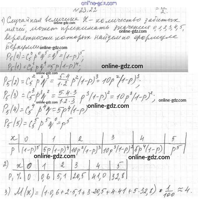 Готовые домашние задания по Алгебре за 11 класс Учебник Мерзляк, Номировский Алгоритм успеха Углубленный уровень 2019 - §23. Характеристики случайной величины 23.22