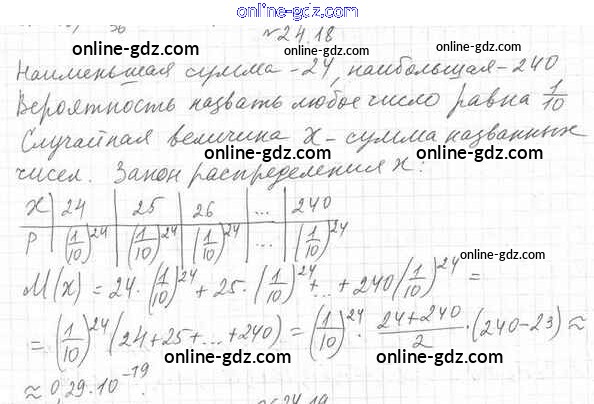 Готовые домашние задания по Алгебре за 11 класс Учебник Мерзляк, Номировский Алгоритм успеха Углубленный уровень 2019 - §24. Математическое ожидание суммы случайных величин 24.18
