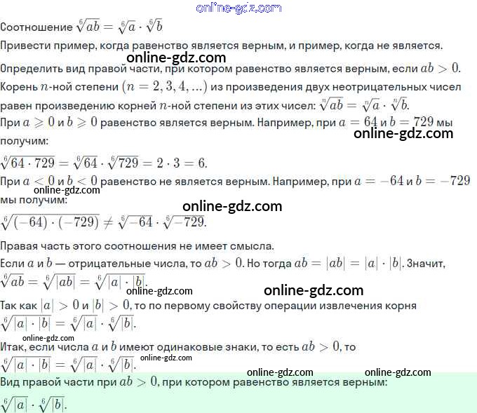 Готовые домашние задания по Алгебре за 11 класс Учебник Мордкович, Семёнов Базовый и углубленный уровень 2017 - §6. Свойства корня n-й степени 3