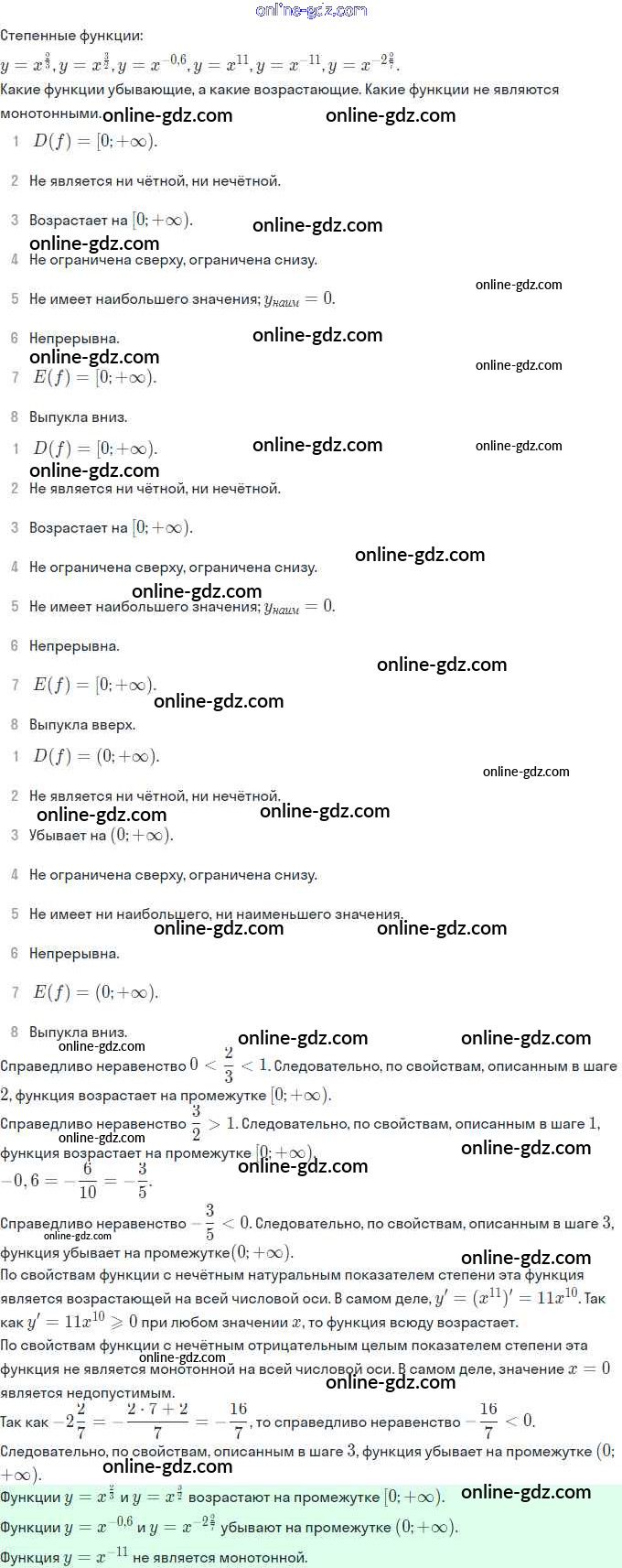 Готовые домашние задания по Алгебре за 11 класс Учебник Мордкович, Семёнов Базовый и углубленный уровень 2017 - §9. Степенная функция, её свойства и график 1