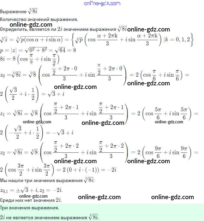Готовые домашние задания по Алгебре за 11 класс Учебник Мордкович, Семёнов Базовый и углубленный уровень 2017 - §10. Извлечение корней из комплексных чисел 3