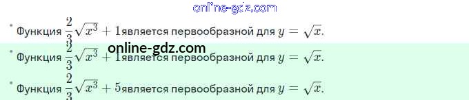 Готовые домашние задания по Алгебре за 11 класс Учебник Мордкович, Семёнов Базовый и углубленный уровень 2017 - §20. Первообразная и неопределённый интеграл 2