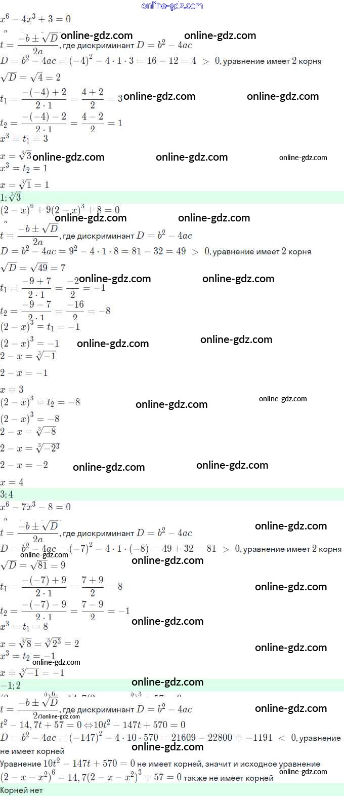 Готовые домашние задания по Алгебре за 11 класс Задачник Мордкович, Семёнов Базовый и углубленный уровень 2017 - §3. Уравнения высших степеней 3.7