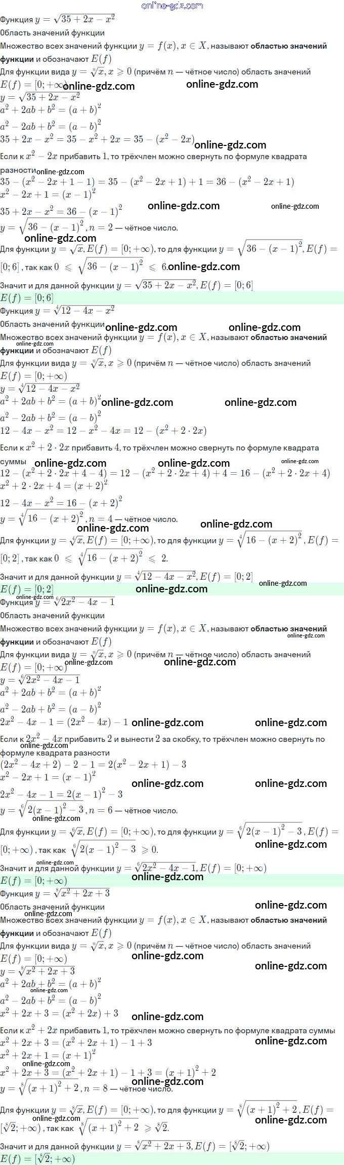 Готовые домашние задания по Алгебре за 11 класс Задачник Мордкович, Семёнов Базовый и углубленный уровень 2017 - §5. Функция у=n^√x, её свойства и график 5.25