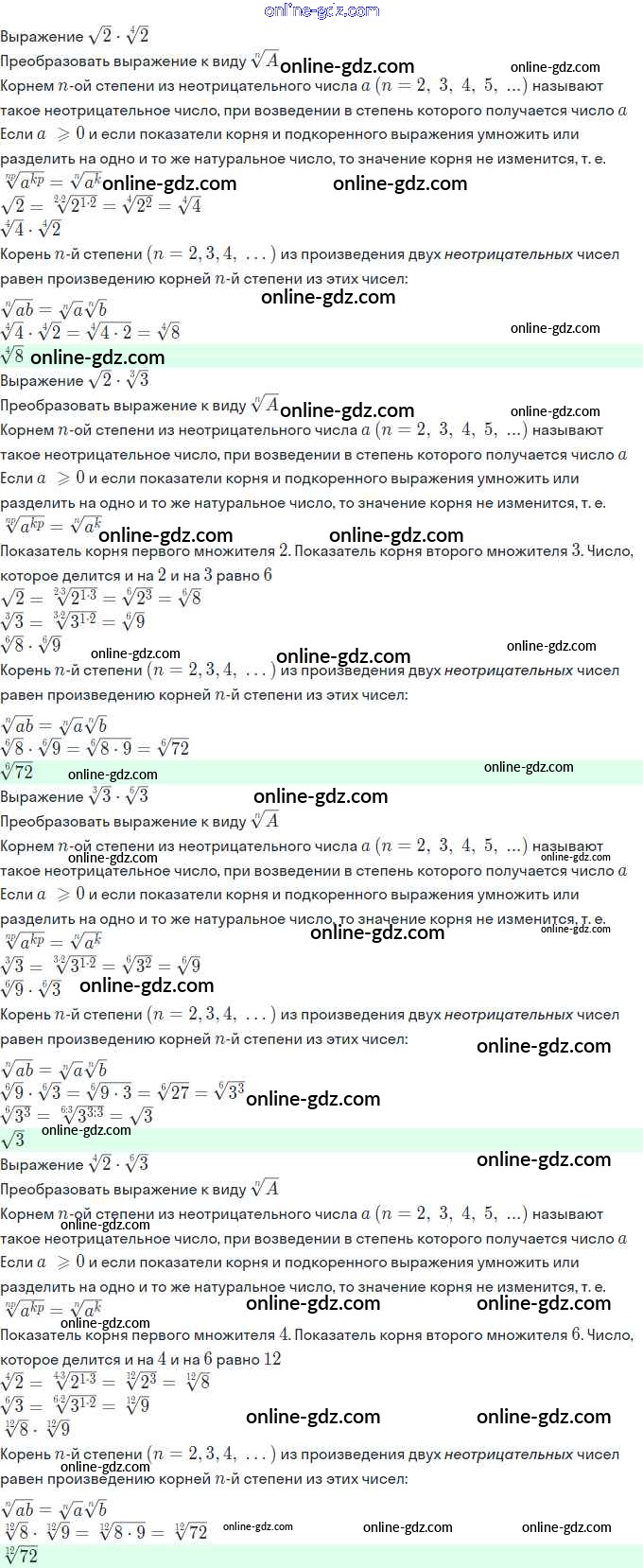 Готовые домашние задания по Алгебре за 11 класс Задачник Мордкович, Семёнов Базовый и углубленный уровень 2017 - §6. Свойства корня n-й степени 6.18