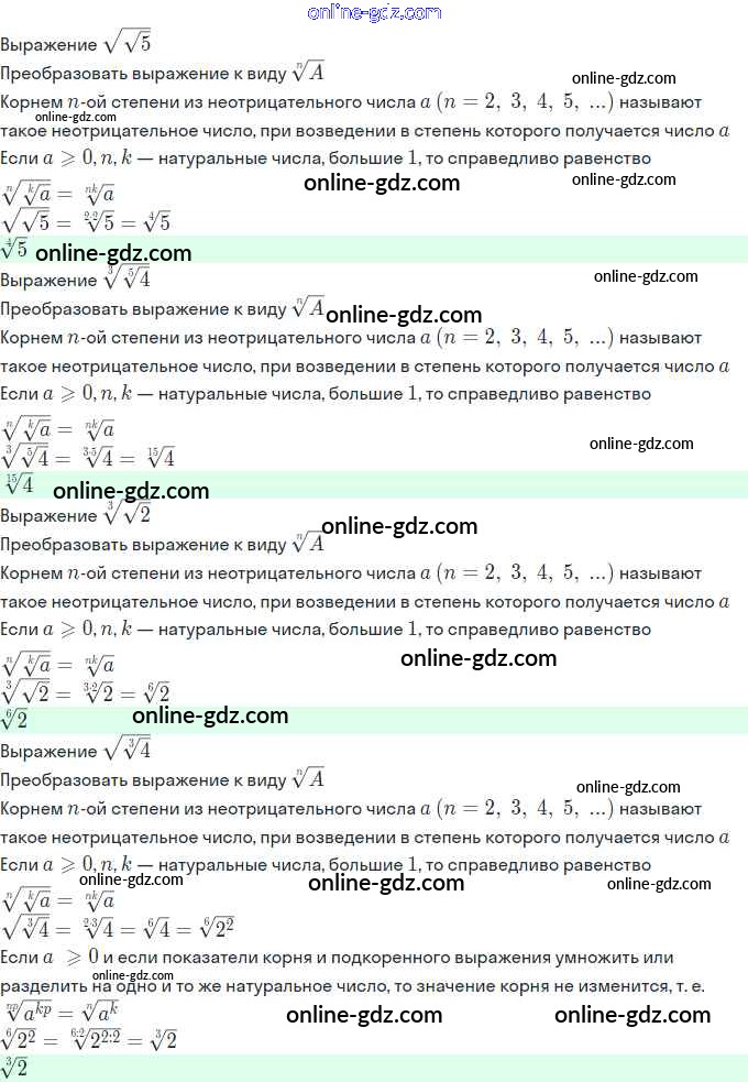 Готовые домашние задания по Алгебре за 11 класс Задачник Мордкович, Семёнов Базовый и углубленный уровень 2017 - §6. Свойства корня n-й степени 6.23