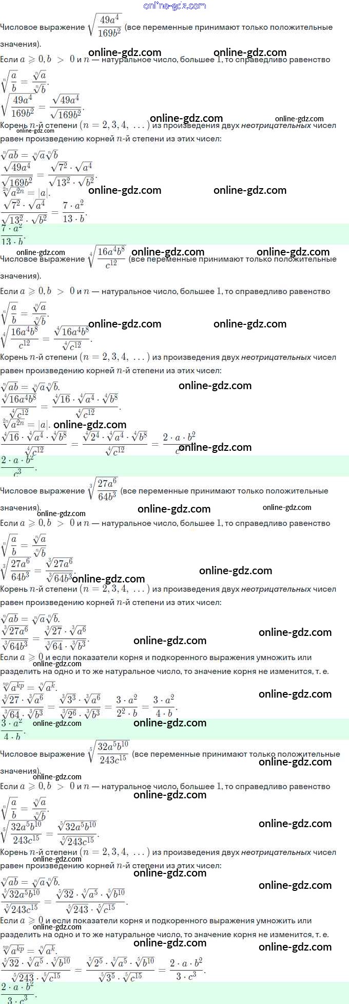 Готовые домашние задания по Алгебре за 11 класс Задачник Мордкович, Семёнов Базовый и углубленный уровень 2017 - §6. Свойства корня n-й степени 6.6