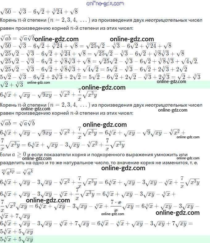 Готовые домашние задания по Алгебре за 11 класс Задачник Мордкович, Семёнов Базовый и углубленный уровень 2017 - §7. Преобразование иррациональных выражений 7.21