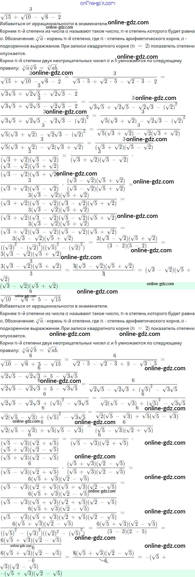 Готовые домашние задания по Алгебре за 11 класс Задачник Мордкович, Семёнов Базовый и углубленный уровень 2017 - §7. Преобразование иррациональных выражений 7.40