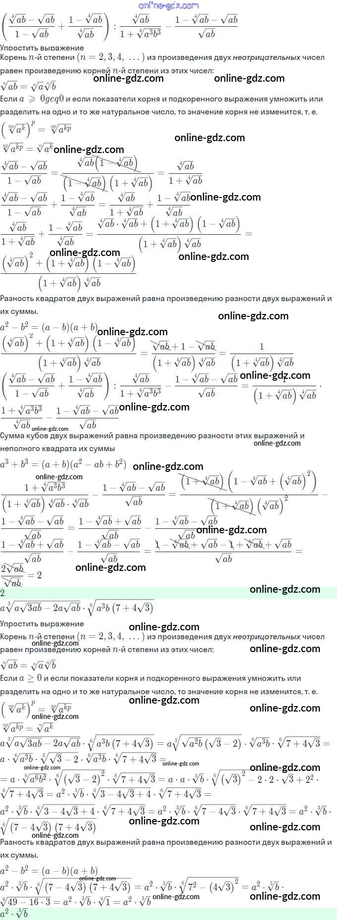 Готовые домашние задания по Алгебре за 11 класс Задачник Мордкович, Семёнов Базовый и углубленный уровень 2017 - §7. Преобразование иррациональных выражений 7.48