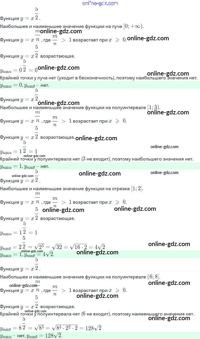 Готовые домашние задания по Алгебре за 11 класс Задачник Мордкович, Семёнов Базовый и углубленный уровень 2017 - §9. Степенная функция, её свойства и график 9.8