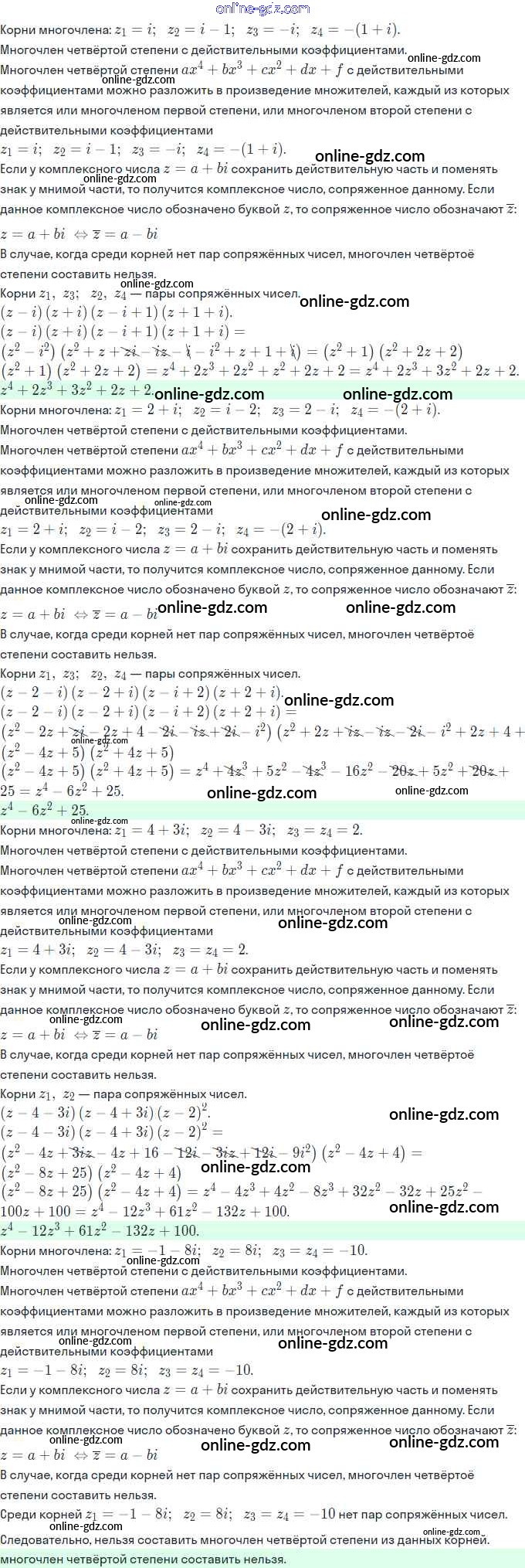 Готовые домашние задания по Алгебре за 11 класс Задачник Мордкович, Семёнов Базовый и углубленный уровень 2017 - §10. Извлечение корней из комплексных чисел 10.20