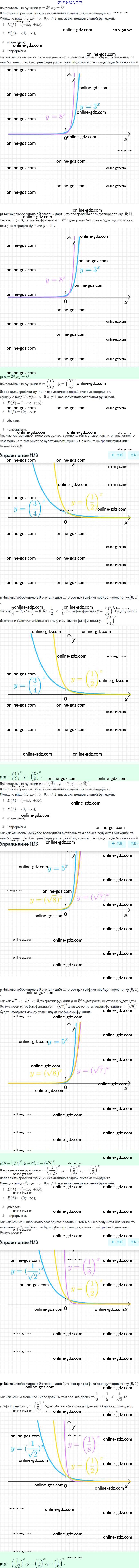 Готовые домашние задания по Алгебре за 11 класс Задачник Мордкович, Семёнов Базовый и углубленный уровень 2017 - §11. Показательная функция, её свойства и график 11.16