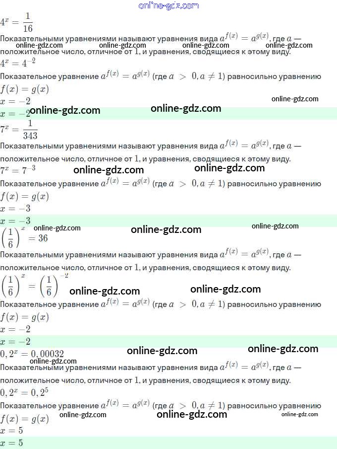 Готовые домашние задания по Алгебре за 11 класс Задачник Мордкович, Семёнов Базовый и углубленный уровень 2017 - §12. Показательные уравнения 12.1