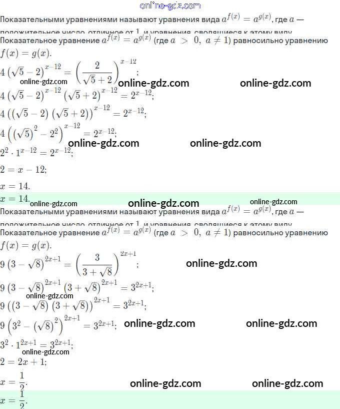 Готовые домашние задания по Алгебре за 11 класс Задачник Мордкович, Семёнов Базовый и углубленный уровень 2017 - §12. Показательные уравнения 12.16