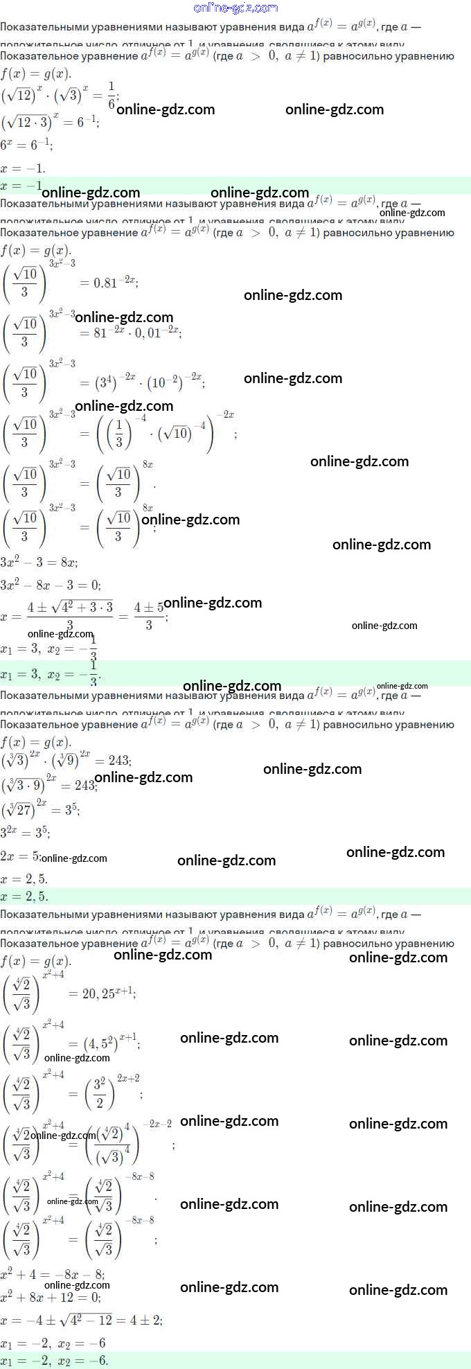 Готовые домашние задания по Алгебре за 11 класс Задачник Мордкович, Семёнов Базовый и углубленный уровень 2017 - §12. Показательные уравнения 12.8